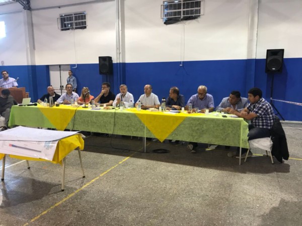 En el gimnasio municipal de Telsen se reunieron representantes del gobierno nacional con intendentes de ciudades y pueblos de Chubut, además de representantes de cámaras empresariales y unos pocos dirigentes políticos y gremiales, entre quienes se contaban el Diputado Nacional Gustavo Menna y el Secretario del Petróleo y Gas Privado de Chubut, Jorge “Loma” Ávila.