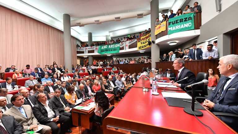 En su alocución, el gobernador recorrió temas de actualidad y no esquivó hablar de la crisis que afecta a la Provincia. Y advirtió que para superarla se requiere “la valentía para enfrentarla, y también nuestra inteligencia para resolverla”.